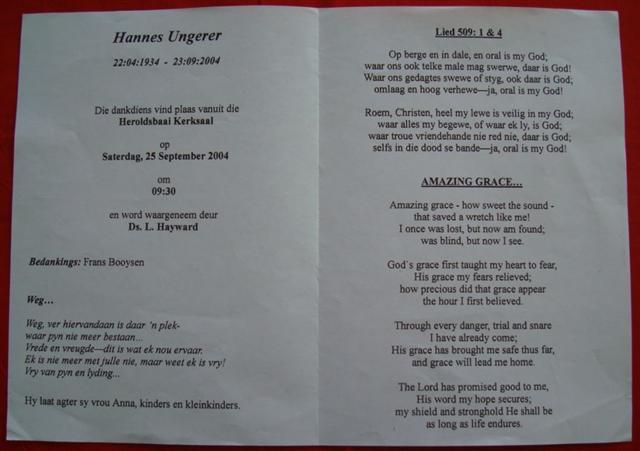 Funeral Programs / Begrafnisbriewe