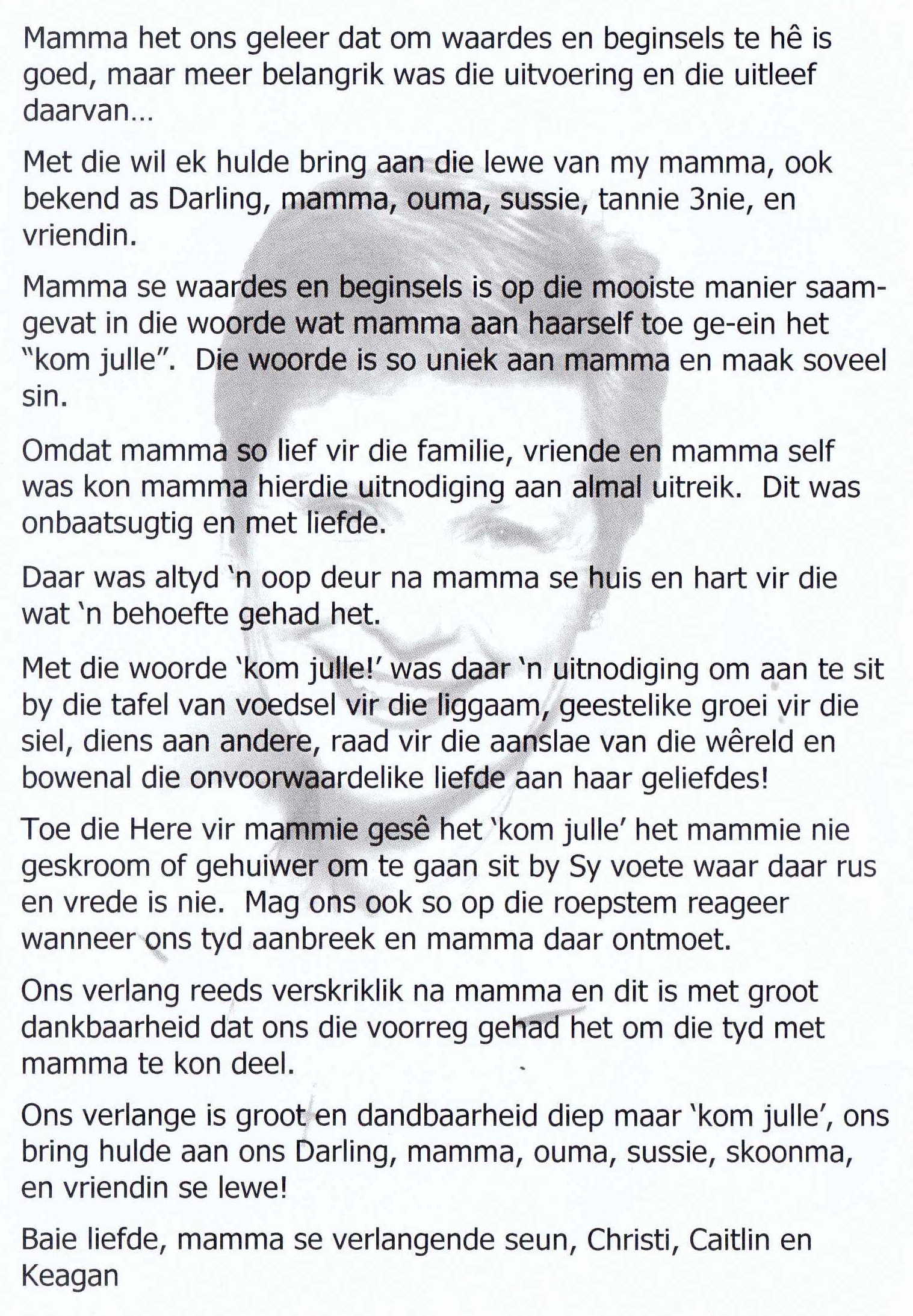 Funeral Programs / Begrafnisbriewe