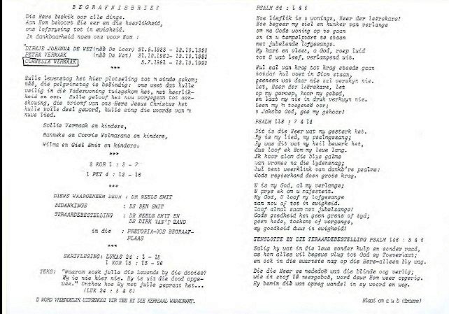 Funeral Programs / Begrafnisbriewe
