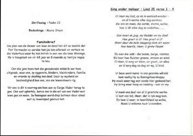 Funeral Programs / Begrafnisbriewe