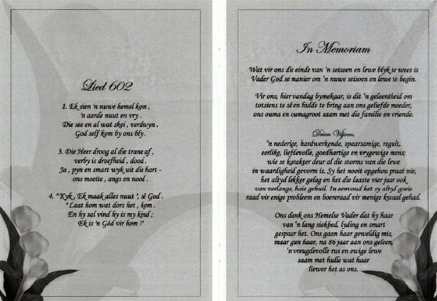 Funeral Programs / Begrafnisbriewe