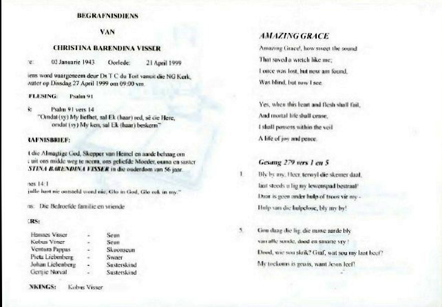 Funeral Programs / Begrafnisbriewe