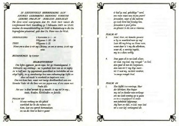 Funeral Programs / Begrafnisbriewe