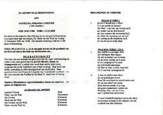 Funeral Programs / Begrafnisbriewe