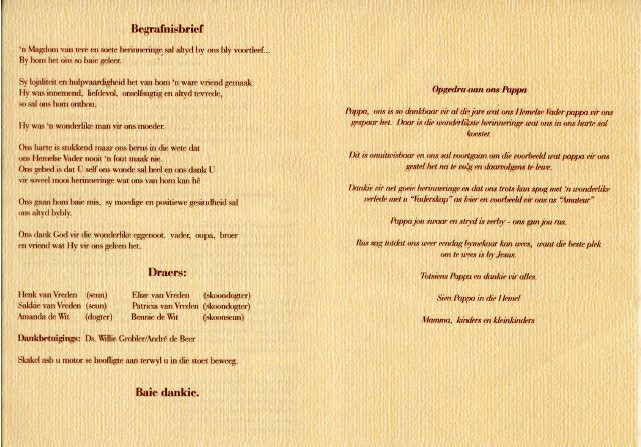 Funeral Programs / Begrafnisbriewe