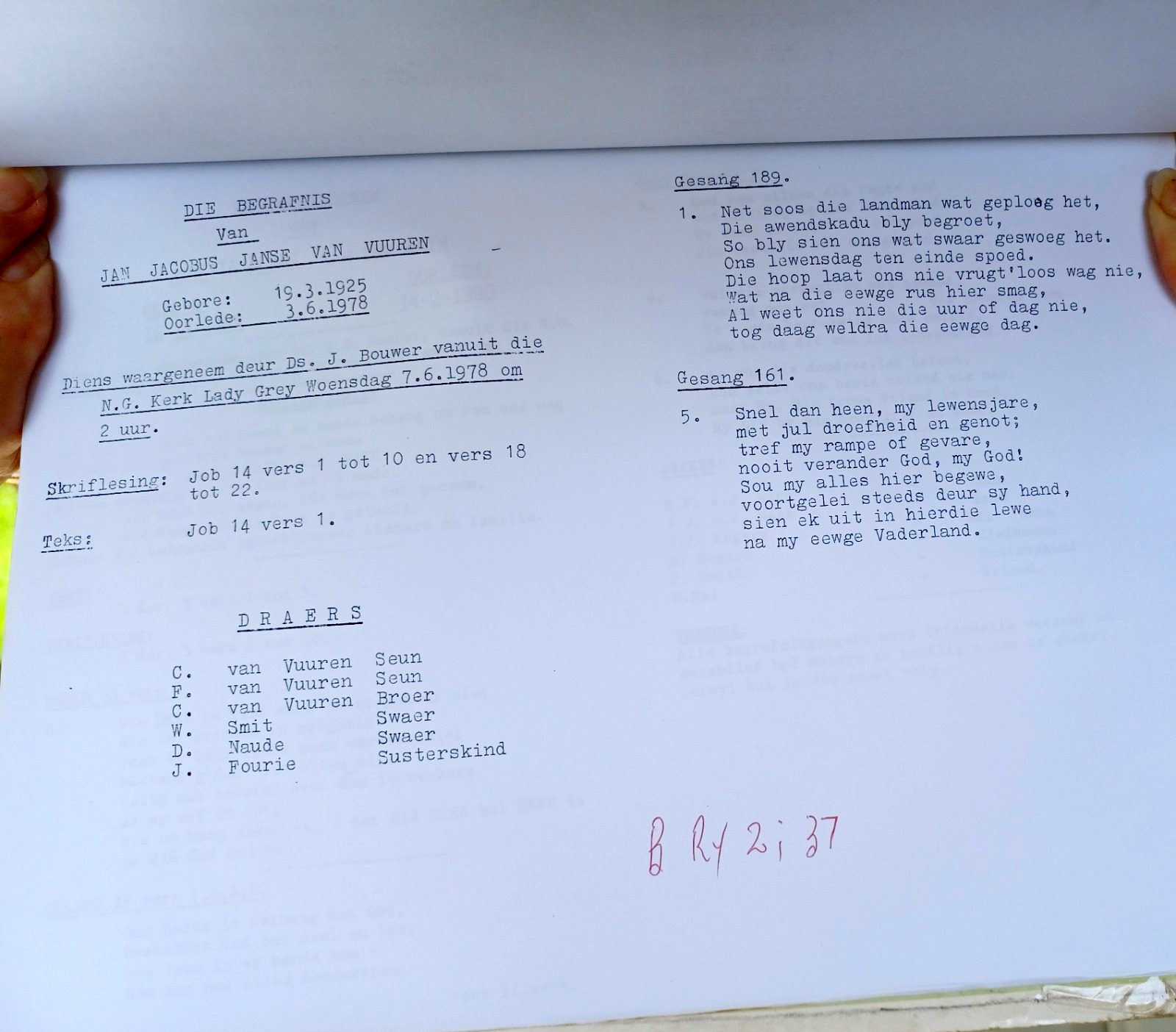 Funeral Programs / Begrafnisbriewe