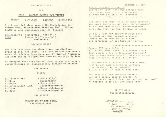Funeral Programs / Begrafnisbriewe
