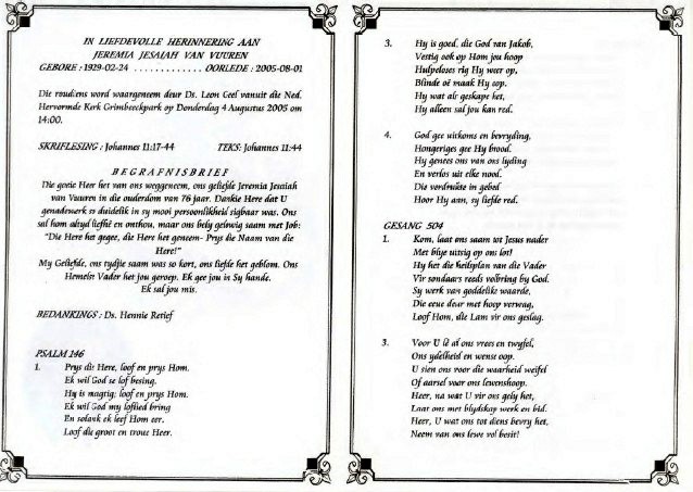 Funeral Programs / Begrafnisbriewe