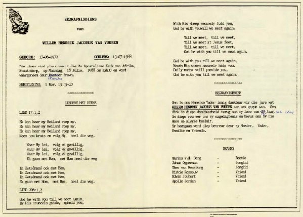 Funeral Programs / Begrafnisbriewe