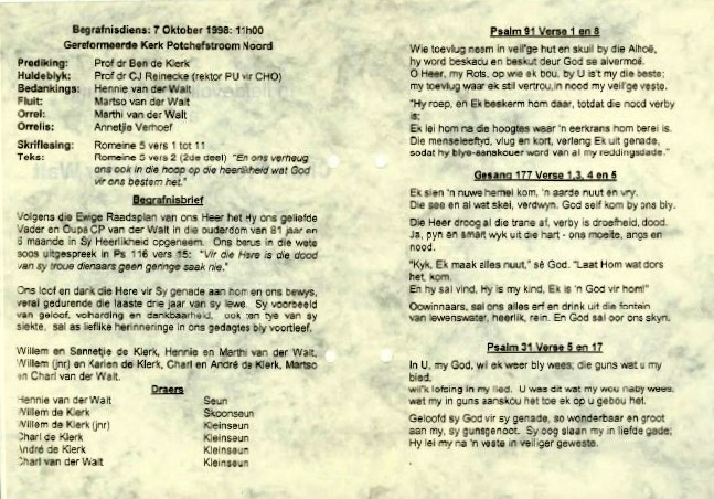 Funeral Programs / Begrafnisbriewe