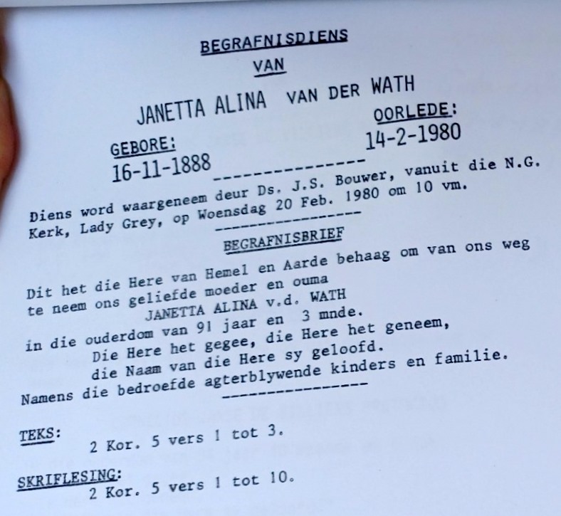 Funeral Programs / Begrafnisbriewe