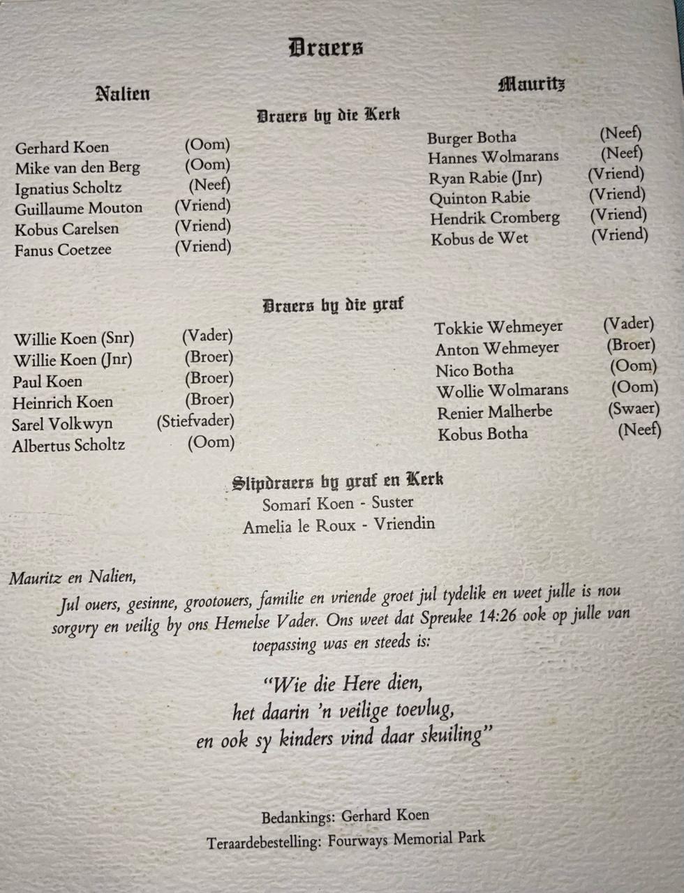Funeral Programs / Begrafnisbriewe