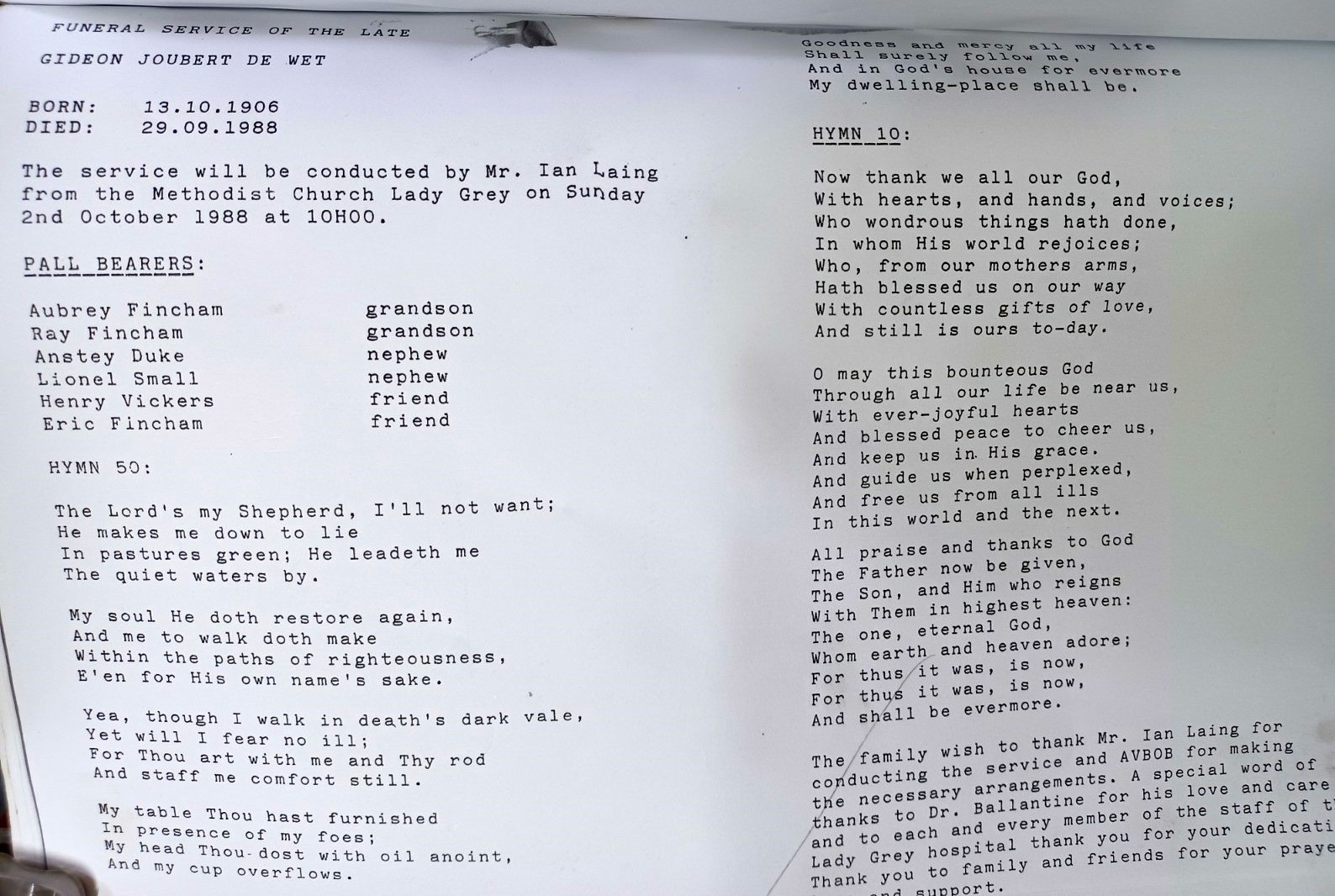 Funeral Programs / Begrafnisbriewe