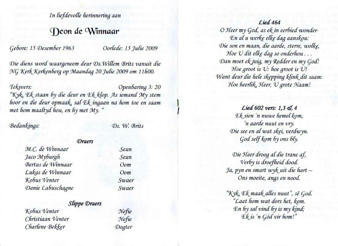 Funeral Programs / Begrafnisbriewe