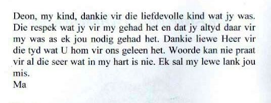 Funeral Programs / Begrafnisbriewe
