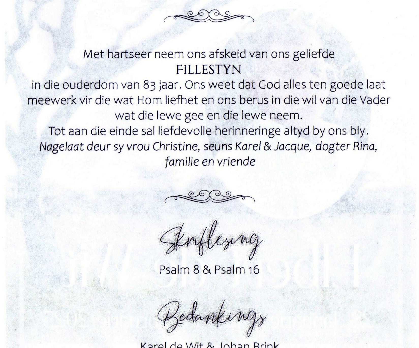 Funeral Programs / Begrafnisbriewe