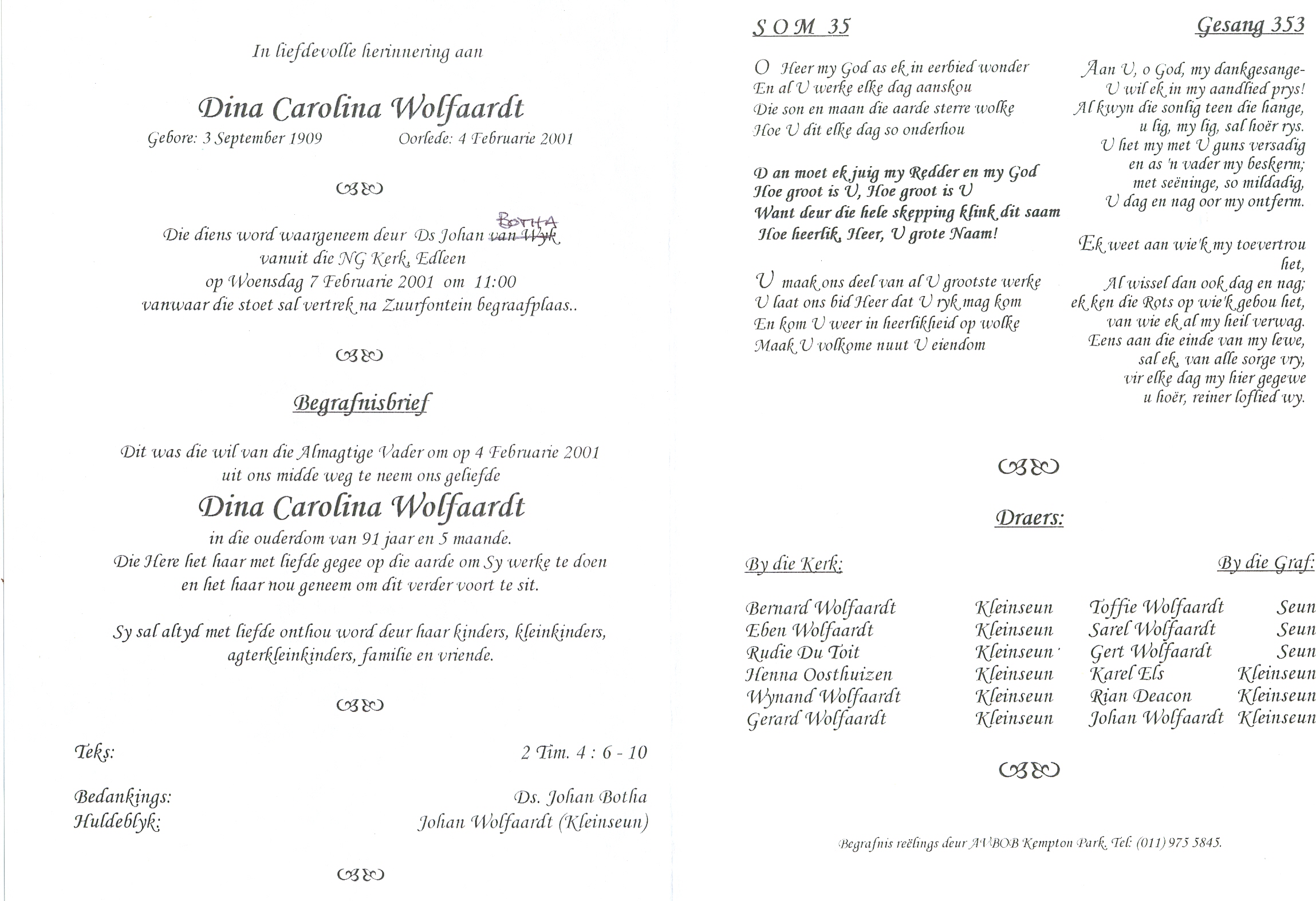 Funeral Programs / Begrafnisbriewe