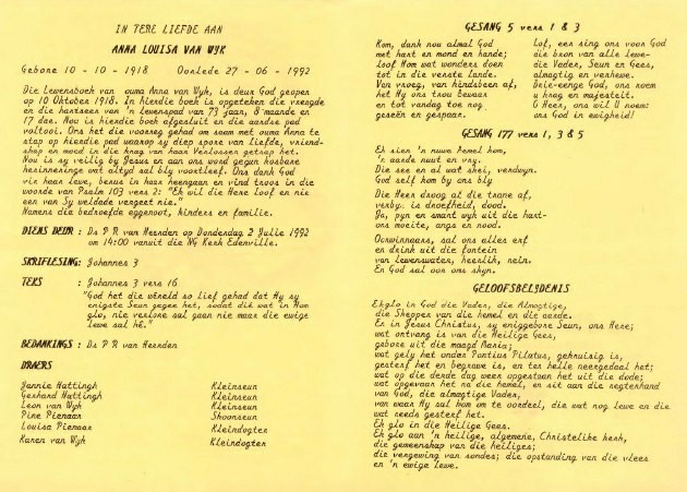 Funeral Programs / Begrafnisbriewe