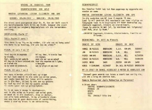 Funeral Programs / Begrafnisbriewe