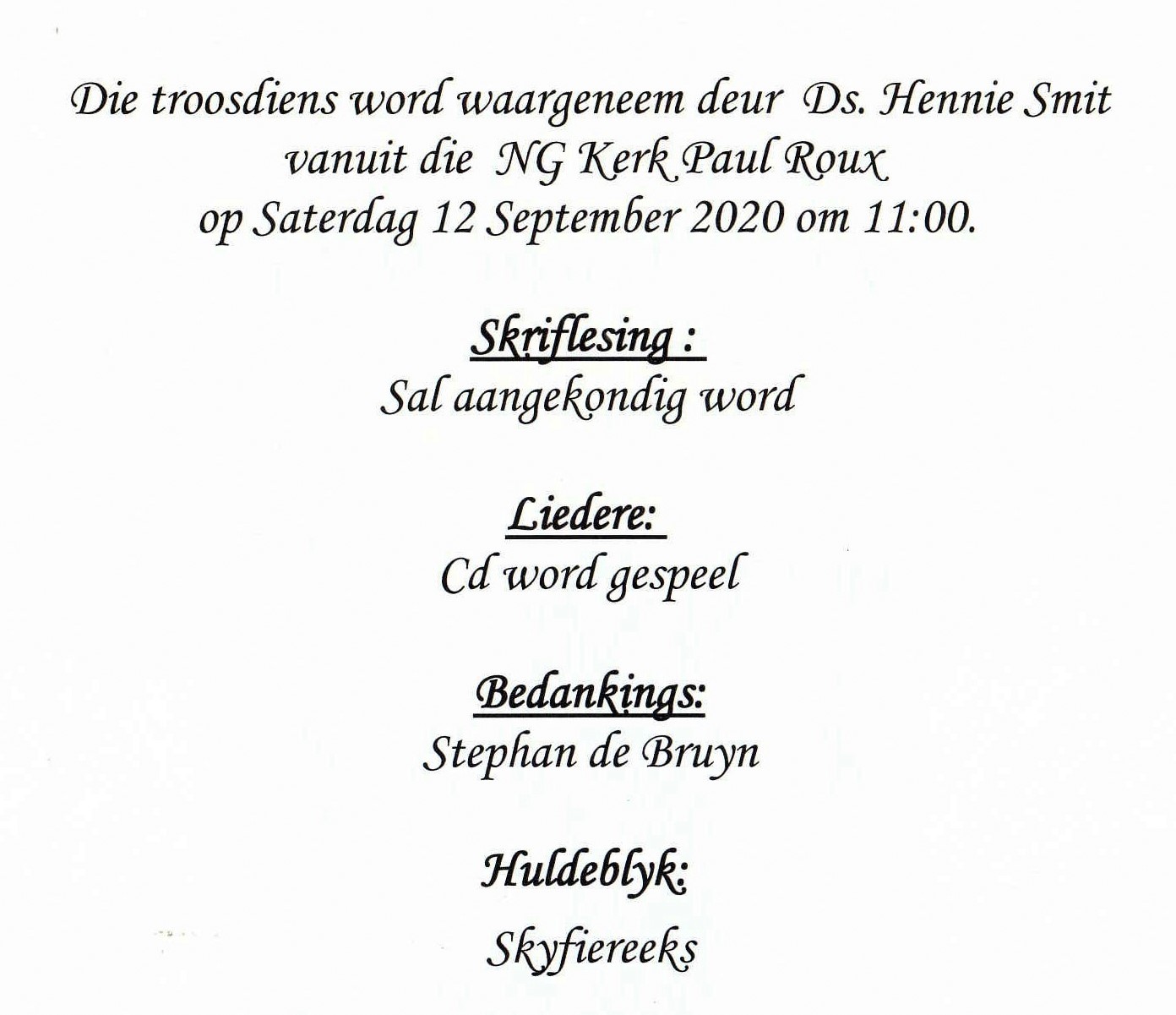 Funeral Programs / Begrafnisbriewe