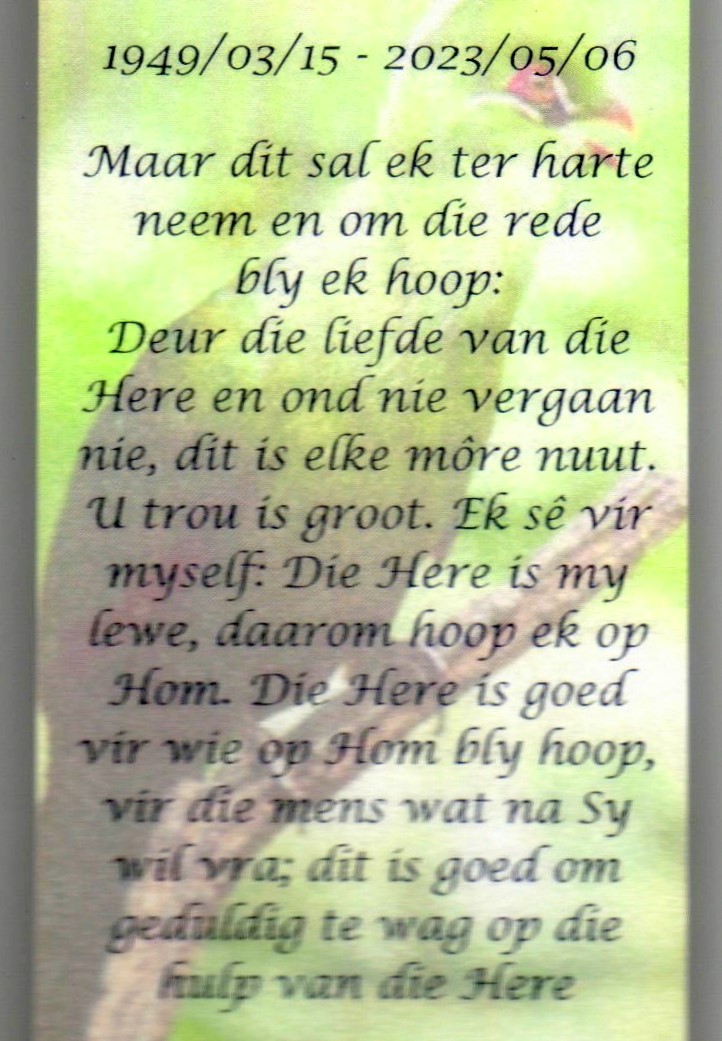 Funeral Programs / Begrafnisbriewe