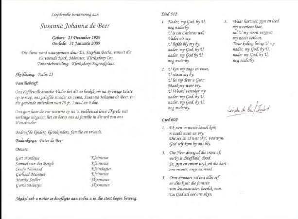 Funeral Programs / Begrafnisbriewe