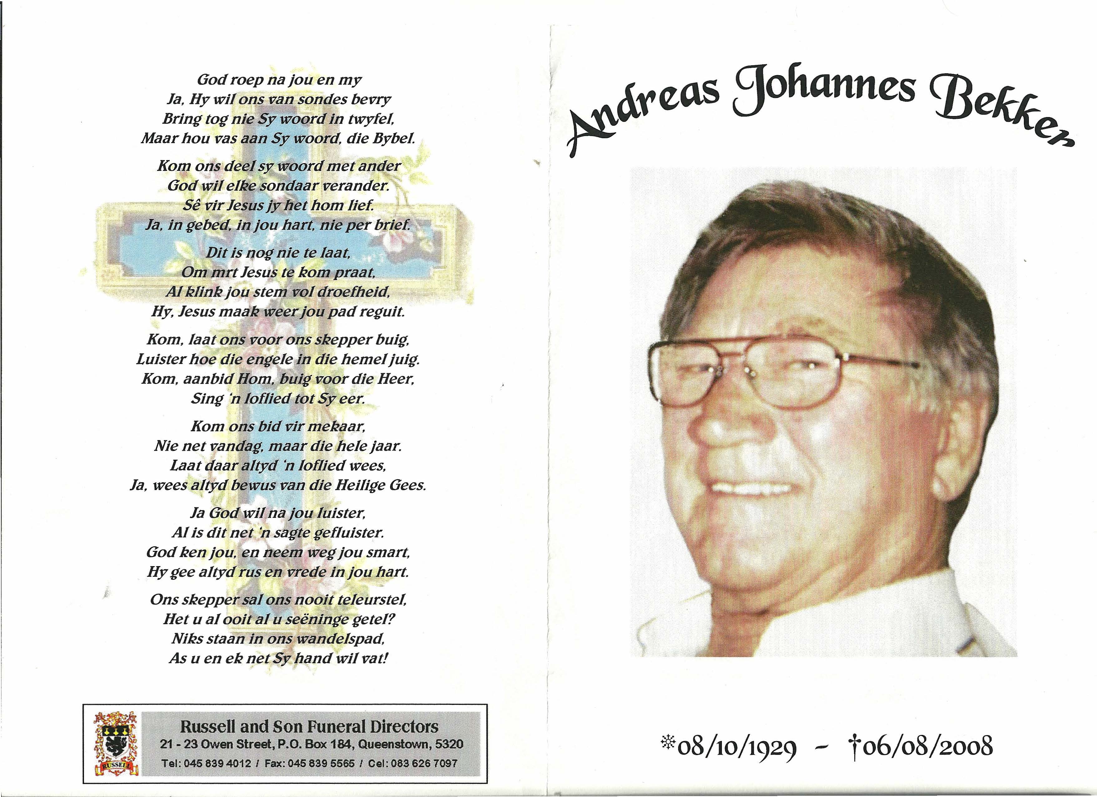 BEKKER-Andreas-Johannes-1929-2008-M