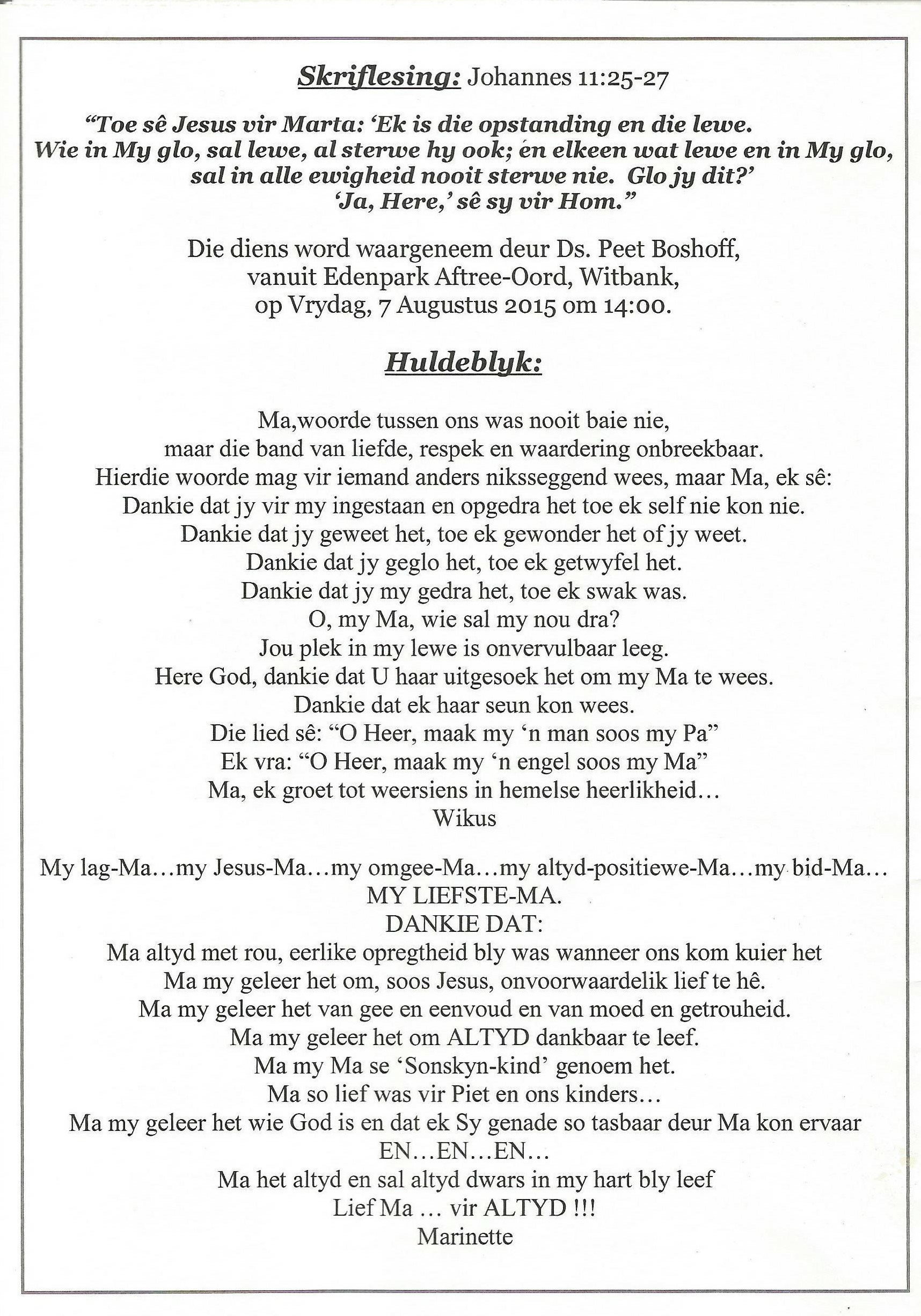Funeral Programs / Begrafnisbriewe