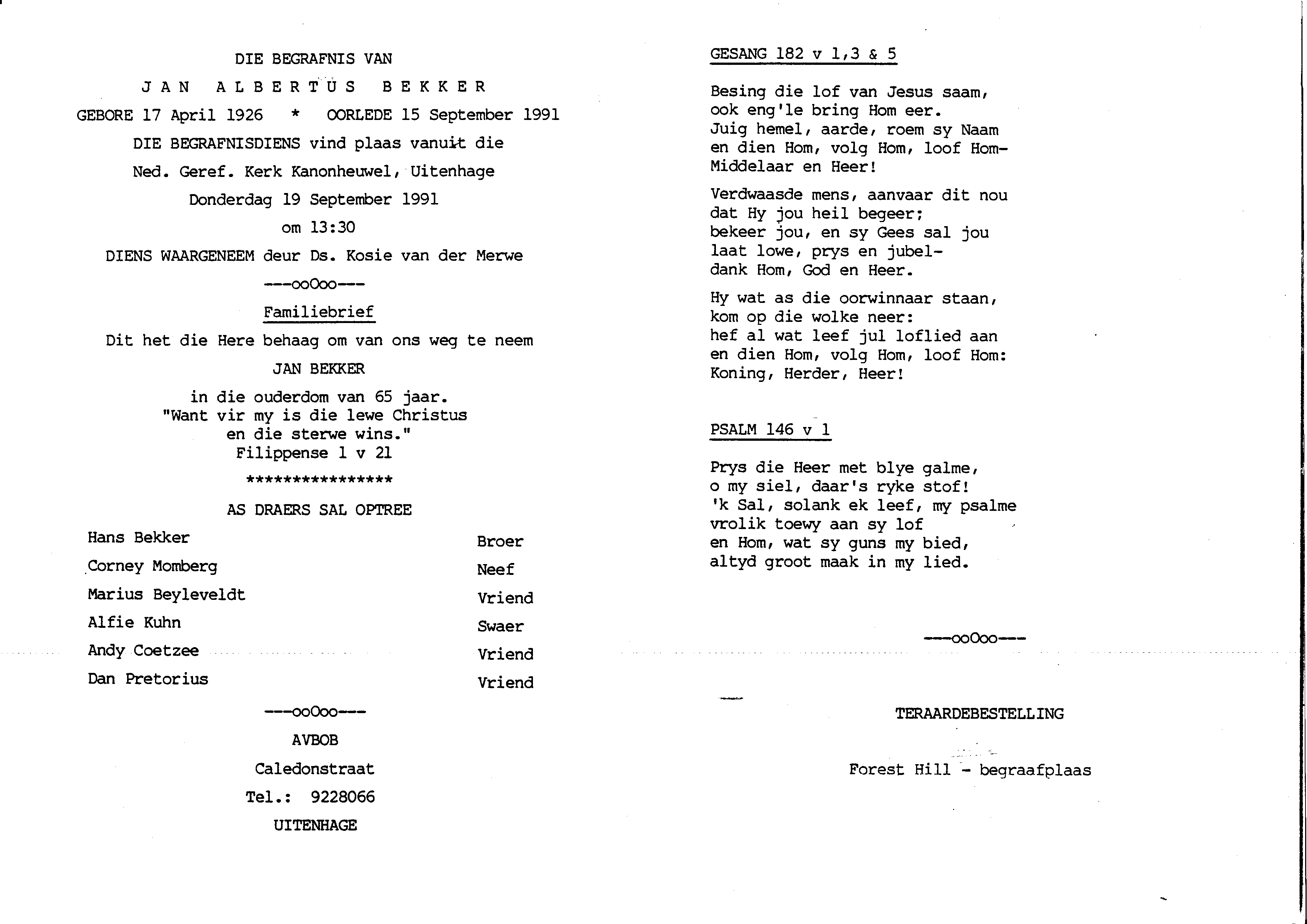Funeral Programs / Begrafnisbriewe