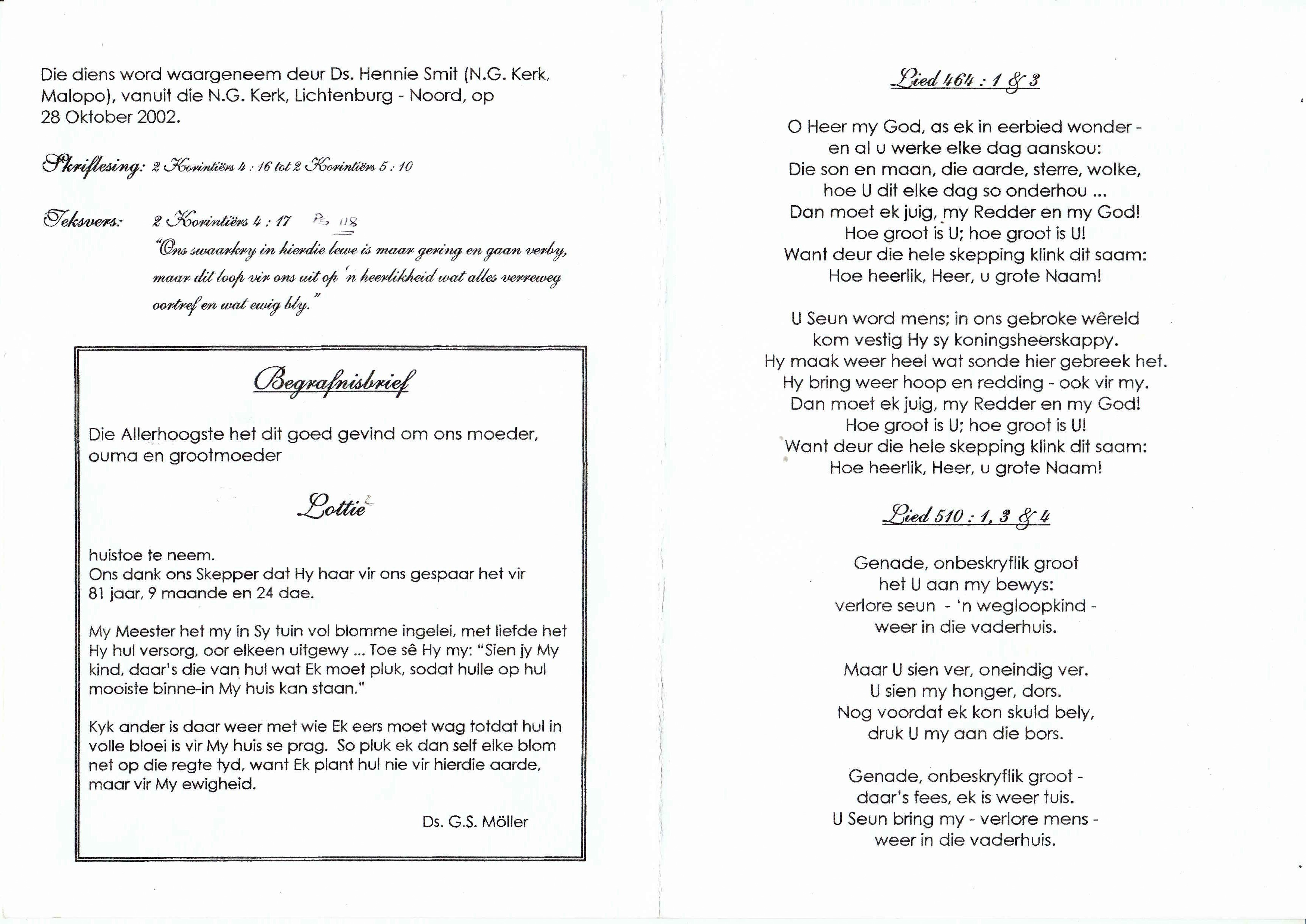 Funeral Programs / Begrafnisbriewe
