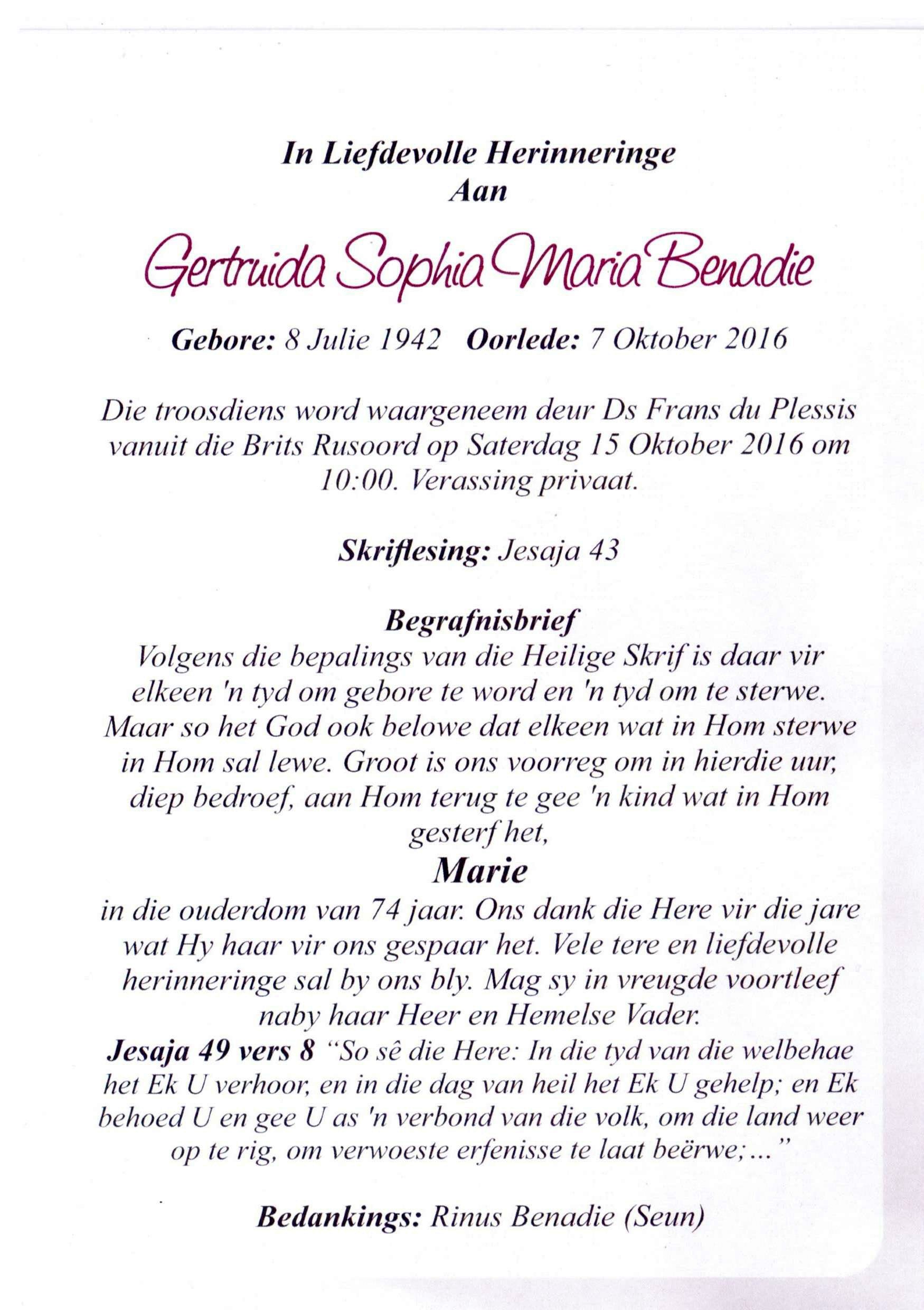 BENADIE-Gertruida-Sophia-Maria-Nn-Marie-1942-2016-F