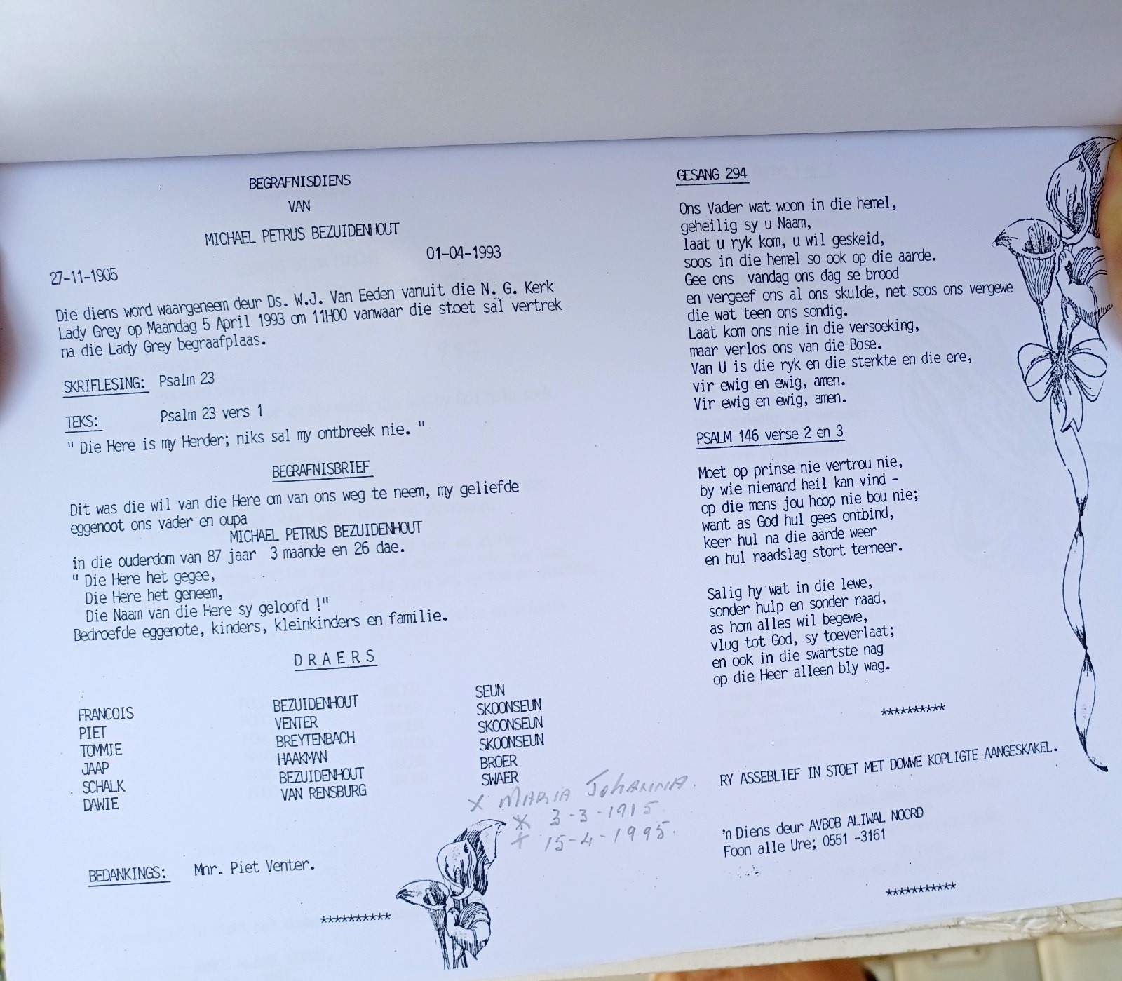 Funeral Programs / Begrafnisbriewe