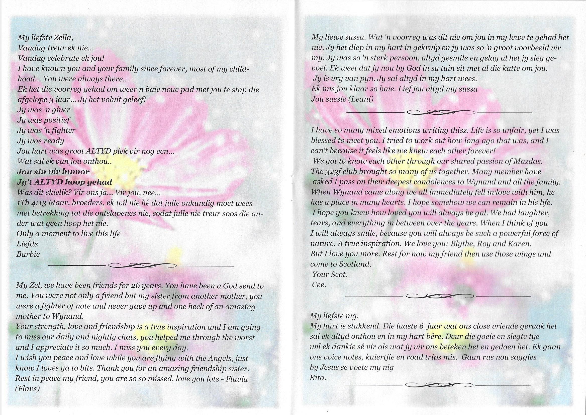 Funeral Programs / Begrafnisbriewe