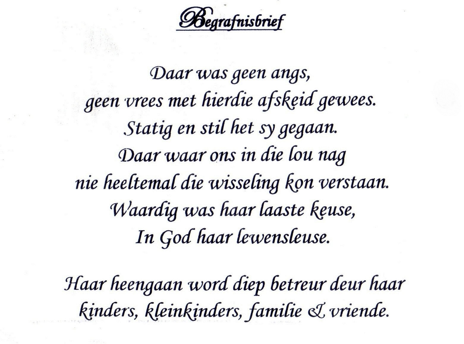 Funeral Programs / Begrafnisbriewe