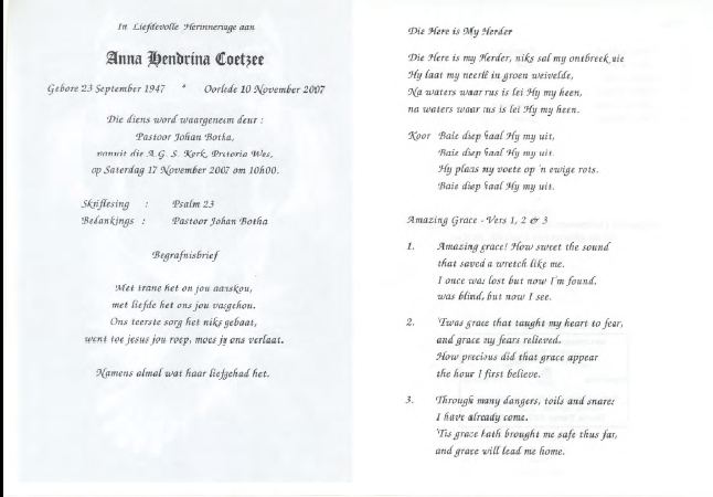 Funeral Programs / Begrafnisbriewe