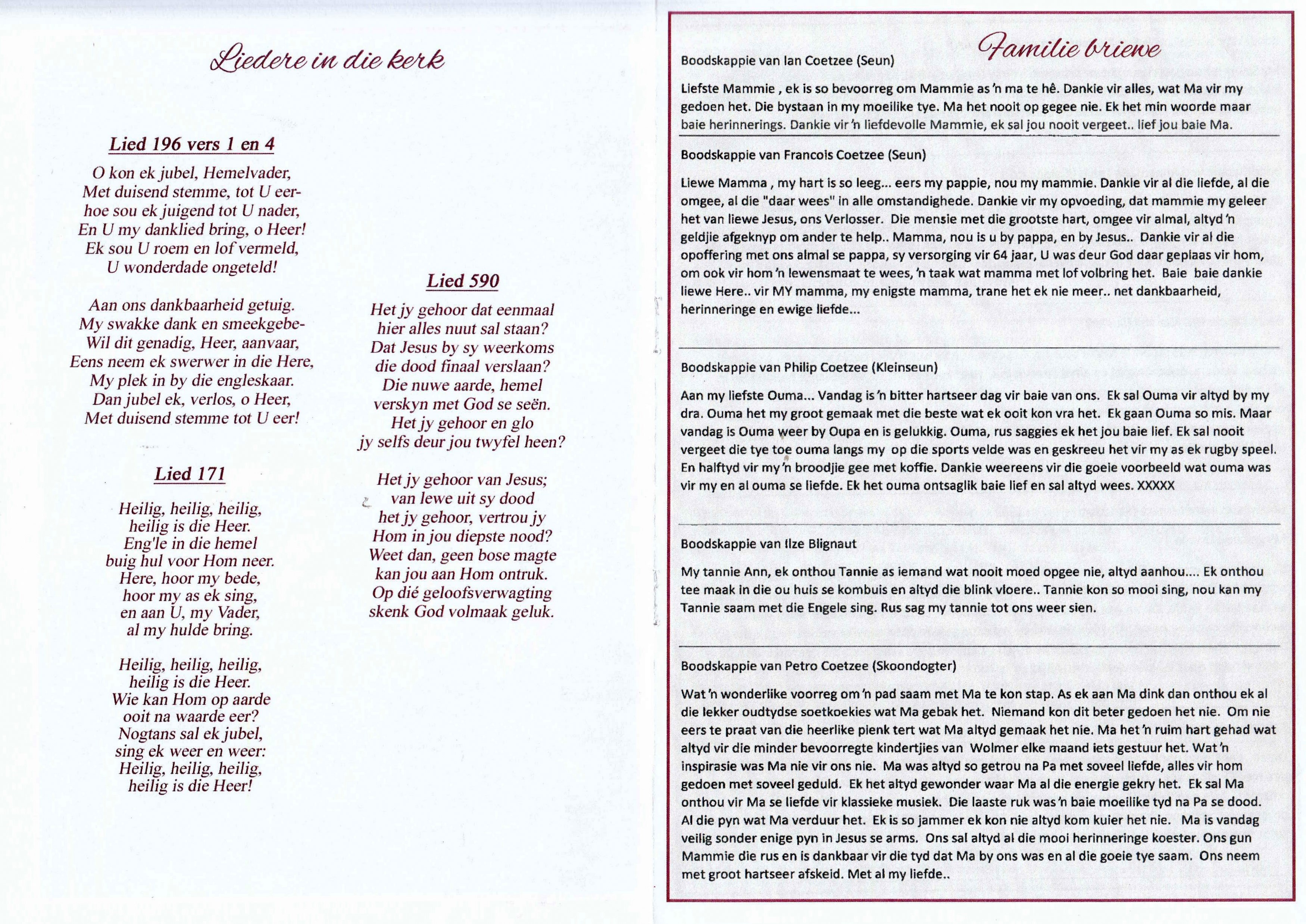 Funeral Programs / Begrafnisbriewe