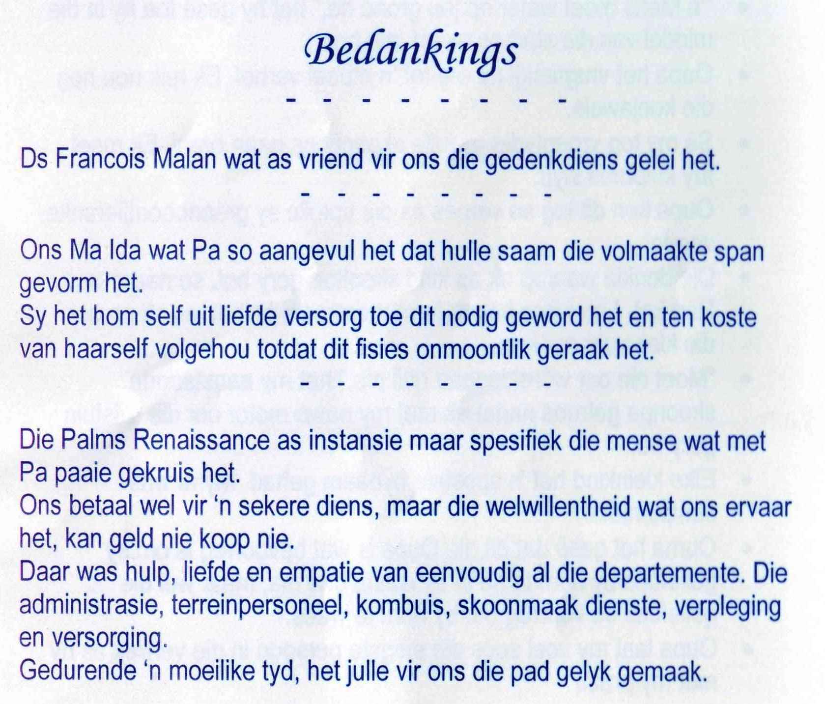 Funeral Programs / Begrafnisbriewe