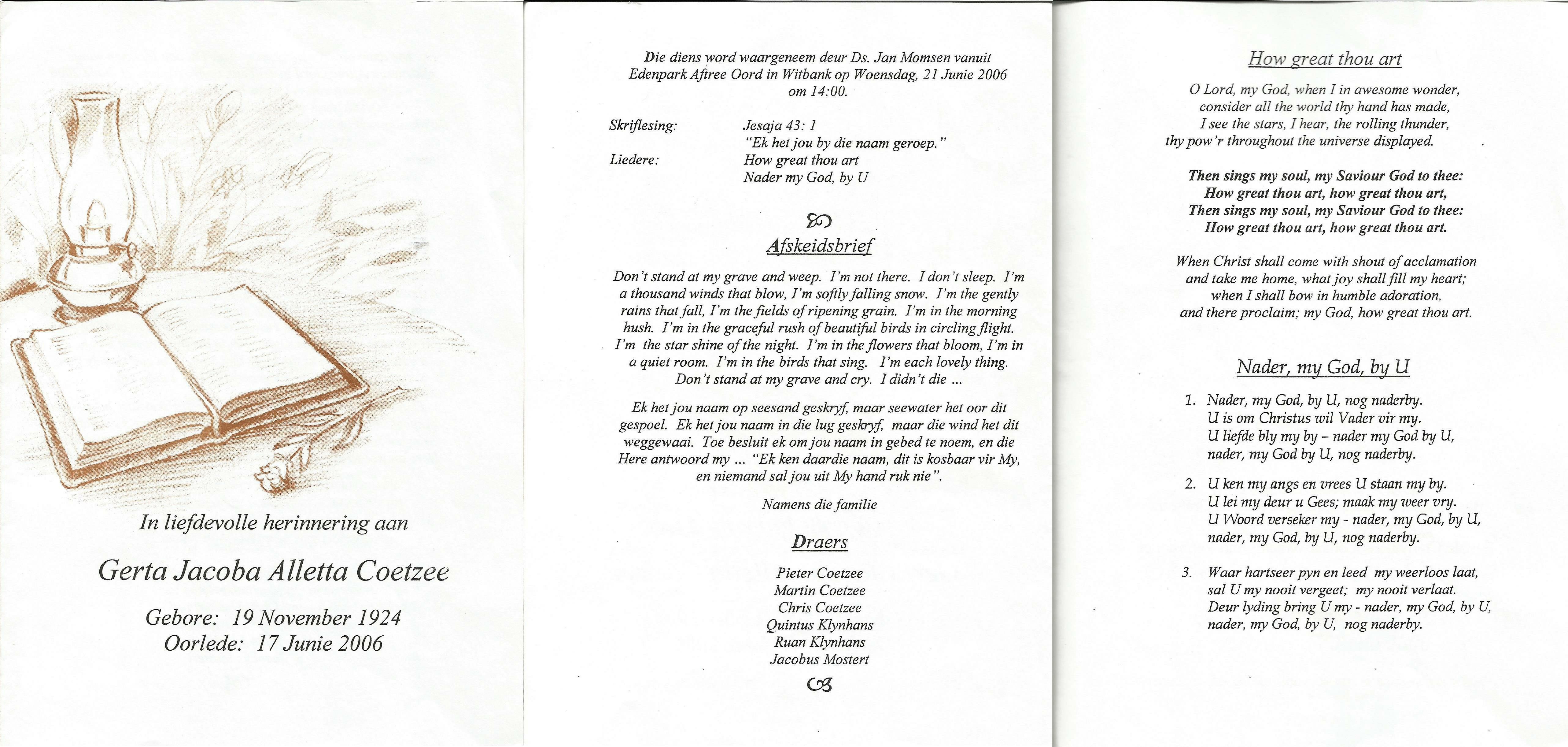 Funeral Programs / Begrafnisbriewe