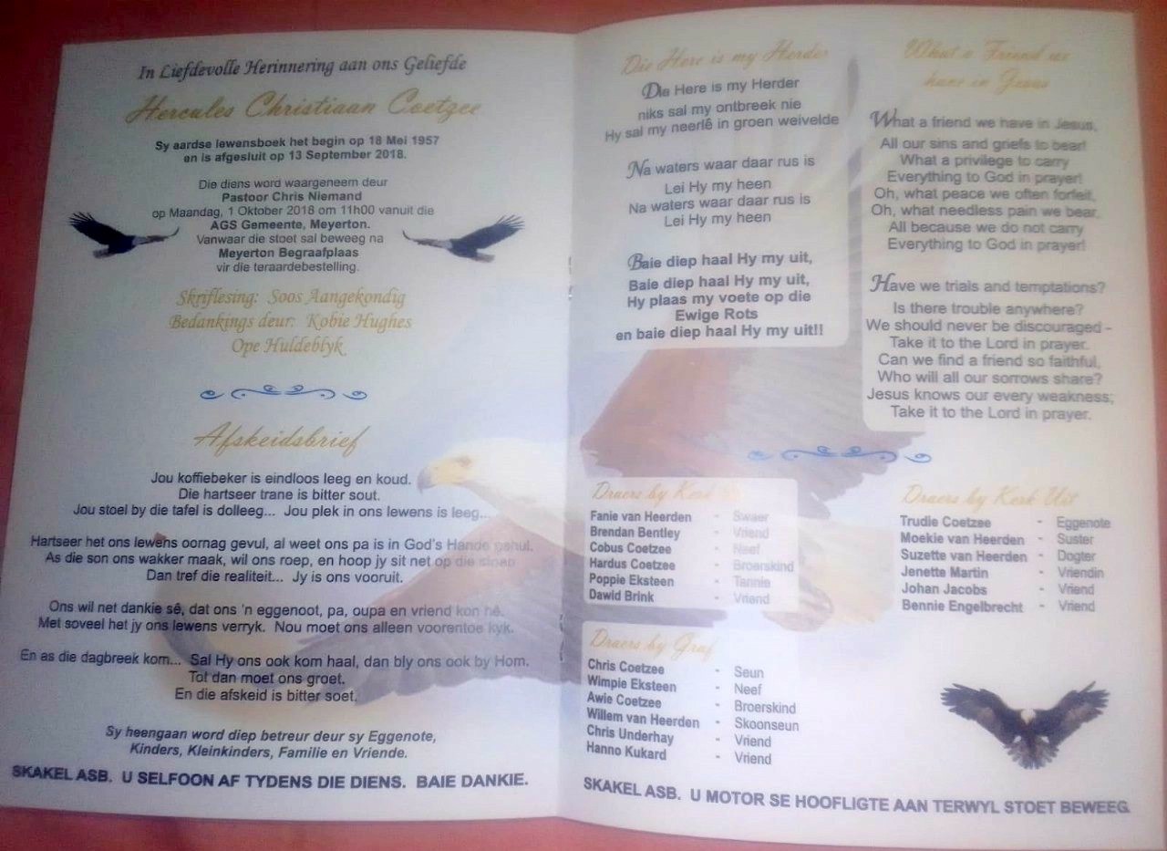 Funeral Programs / Begrafnisbriewe
