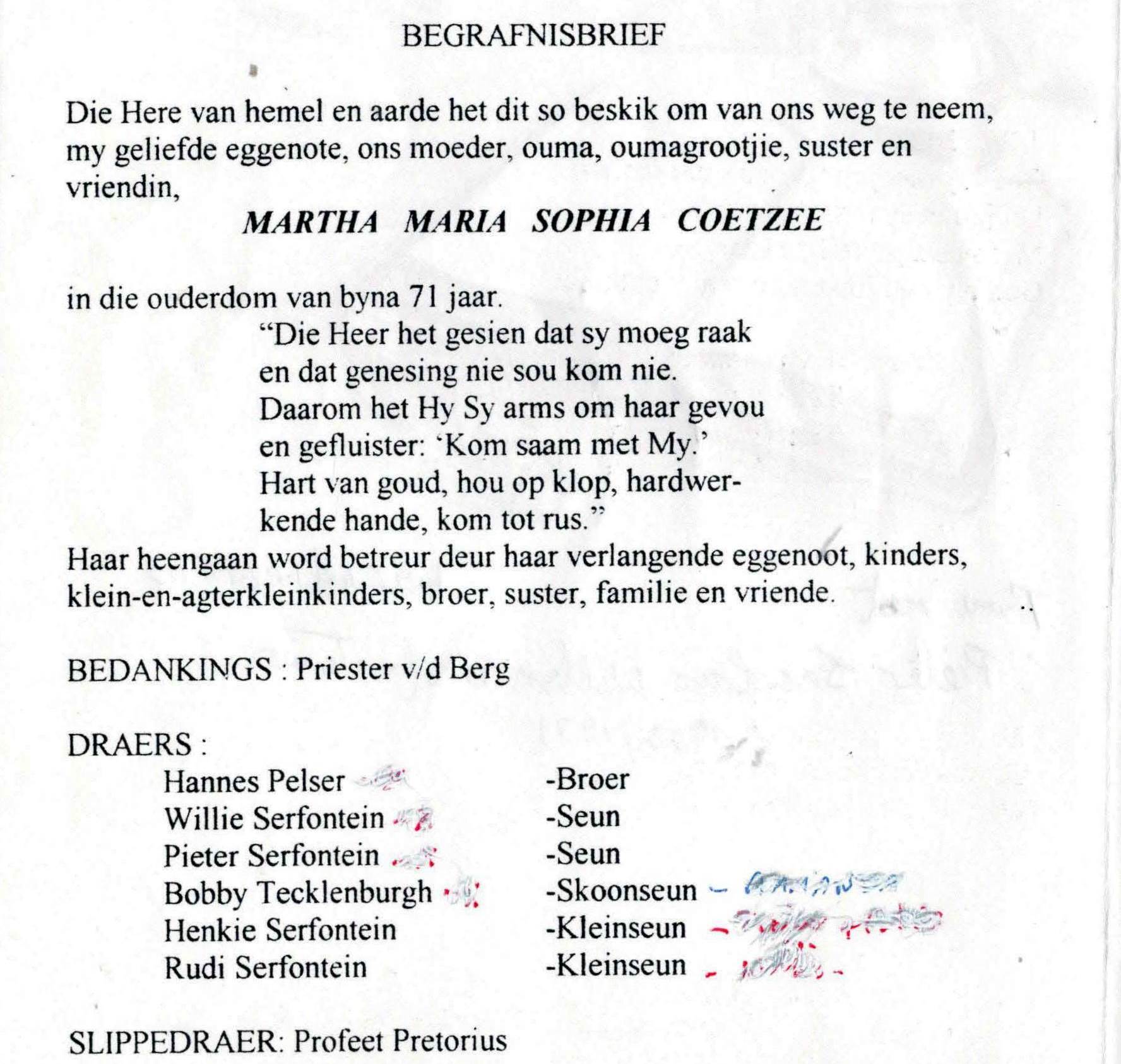 Funeral Programs / Begrafnisbriewe