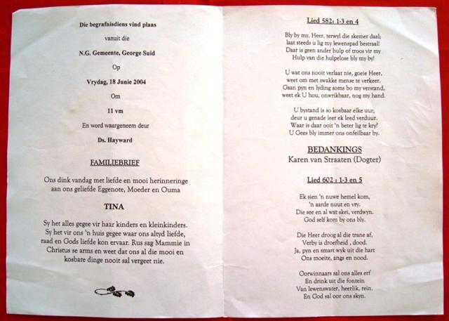 Funeral Programs / Begrafnisbriewe