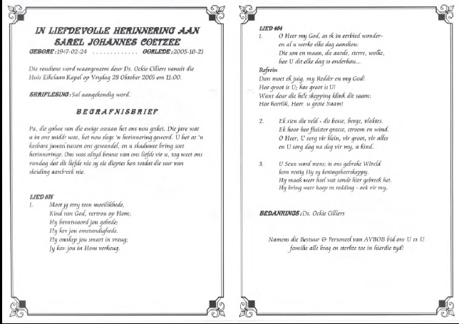 Funeral Programs / Begrafnisbriewe