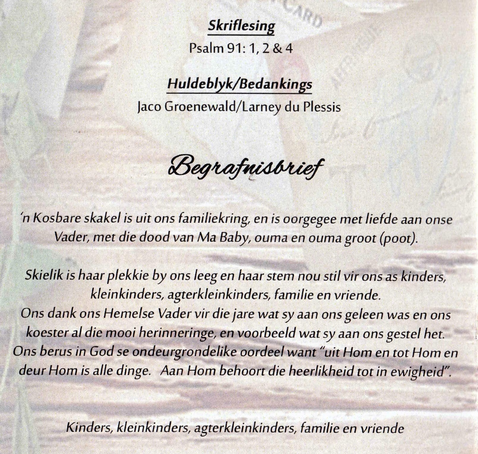 Funeral Programs / Begrafnisbriewe