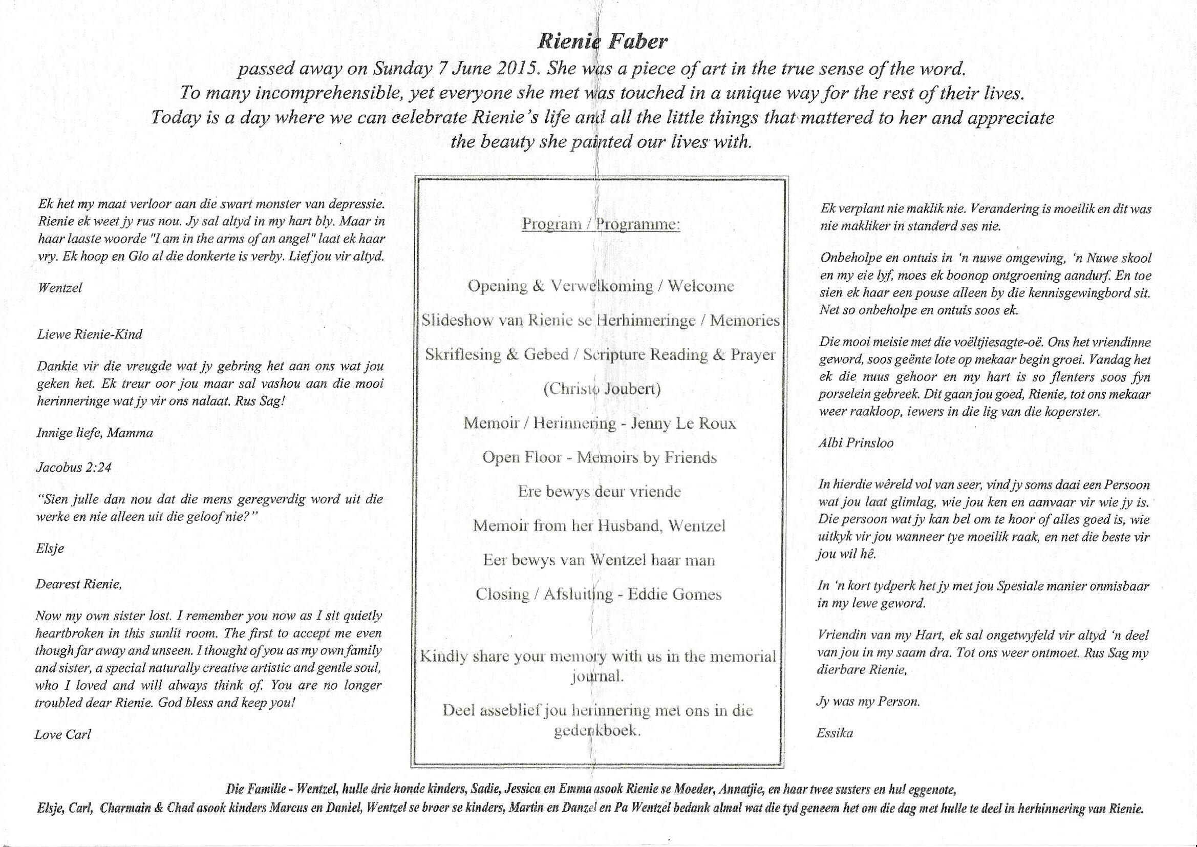 Funeral Programs / Begrafnisbriewe