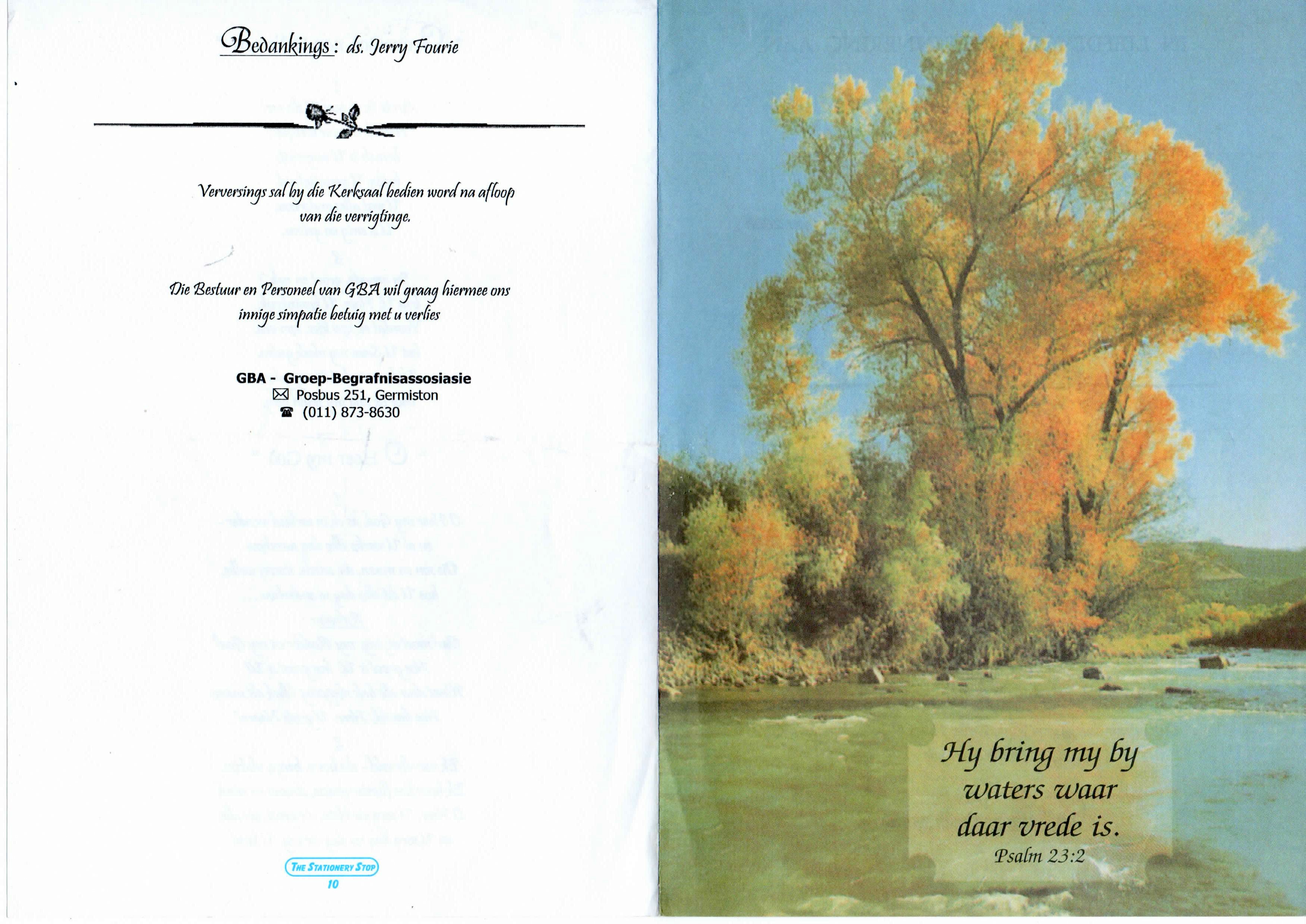 Funeral Programs / Begrafnisbriewe