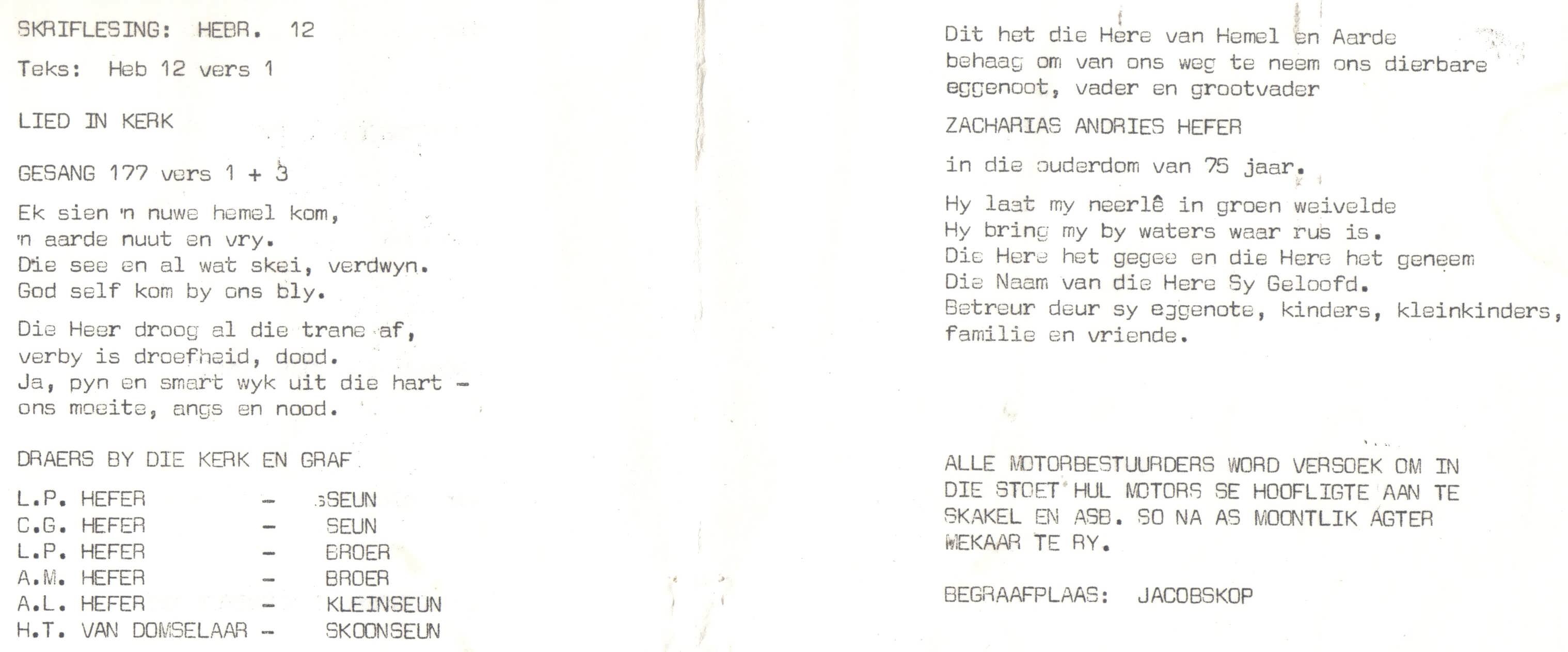 HEFER-Zacharias-Andries-1909-1984-75jr-M