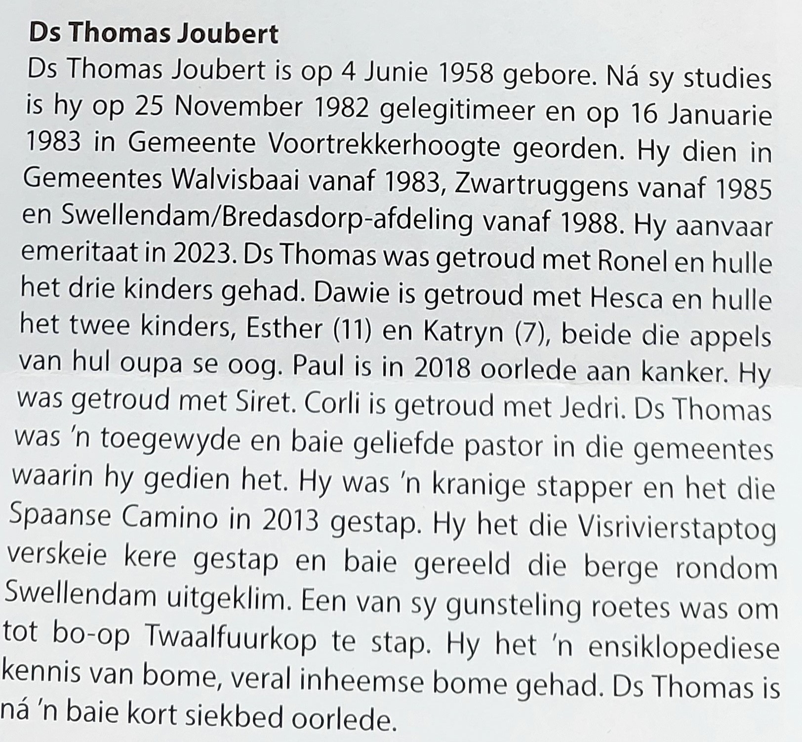 Funeral Programs / Begrafnisbriewe