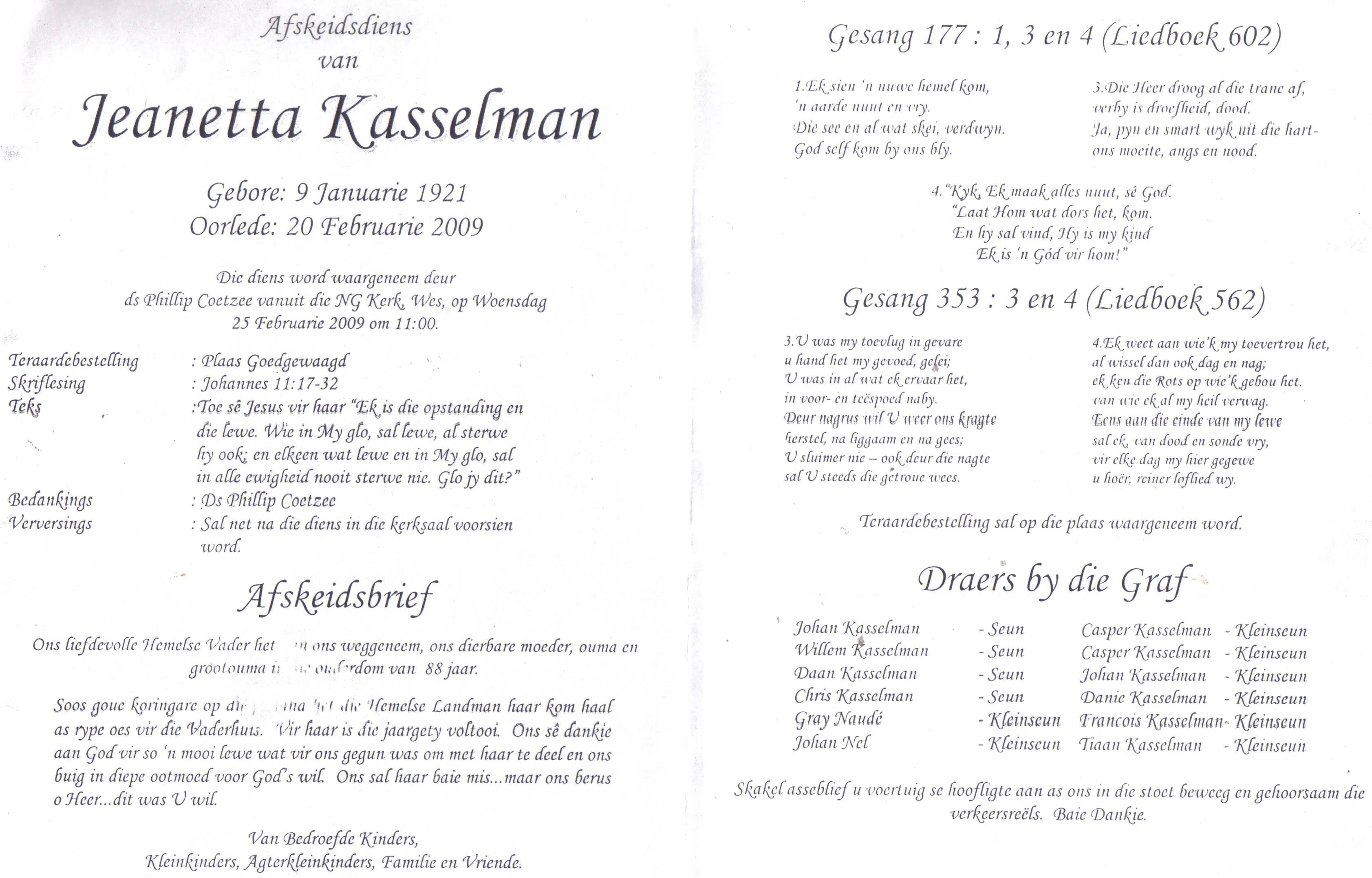 Funeral Programs / Begrafnisbriewe
