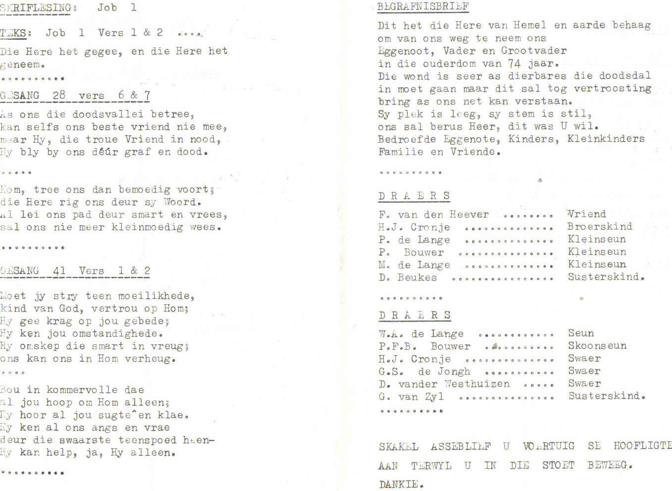 Funeral Programs / Begrafnisbriewe
