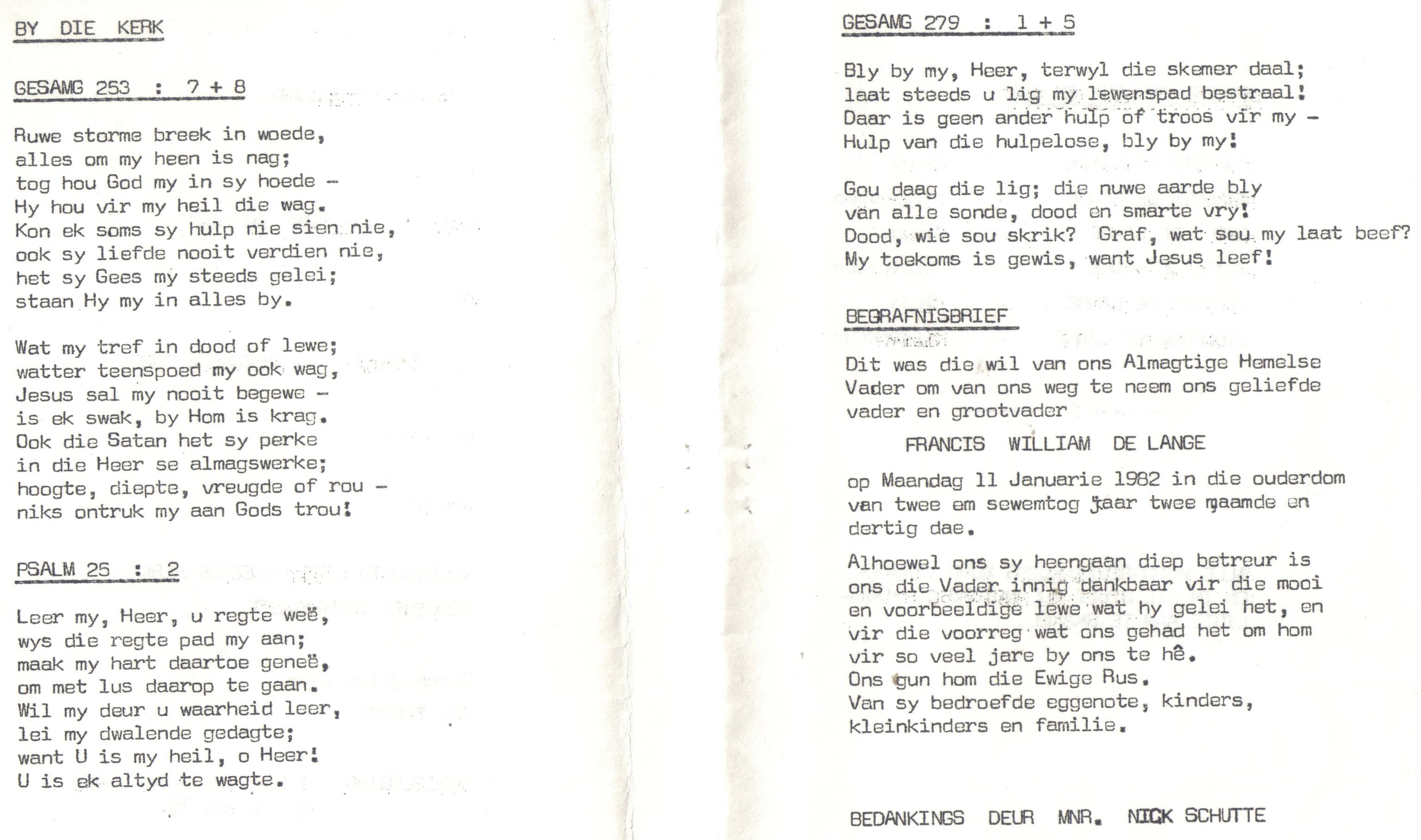 Funeral Programs / Begrafnisbriewe